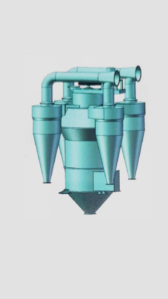 物料通過分選機上部的進料口進入選粉室內,物料落入轉動的撒料盤上,在離心力作用下,向四周均勻拋出,分散的物料在外接風機的高速氣流作用下,粗重顆粒被甩向選粉室的內壁,失去動能后沿壁面滑下,在分選機底部排出腔體,其余粒度較細的顆粒被旋轉上升的氣流卷起,穿過分級轉子的葉片進入高效旋風分離器中,作為成品被收集。